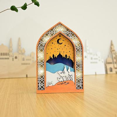 Creative Night Light Ornament LED Eid Wooden Decoration Handmade Eid Desktop Ornament Scene Layout