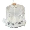 New Spring White Shirt High-end and Stylish Lace Crocheted French Top for Women