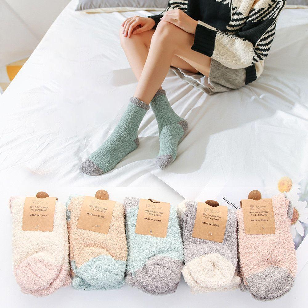Candy Colors Plush Winter Warm Cashmere Sox Soft Coral velvet socks Thickening