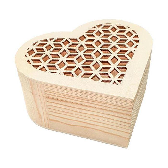 Boite à bijoux - Coeur - Bois ciselé - 15x14,5x7cm - A décorer et personnaliser