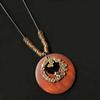Round Clothing Pendant Retro Ethnic Sweater Necklace Gifts Vintage Leather Lanyard Women Girls