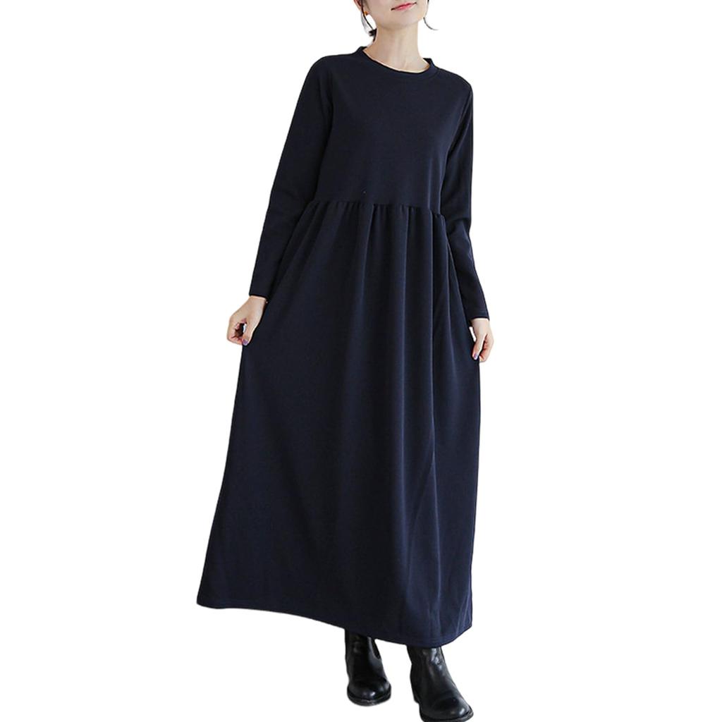 [Comfortable Long Dress] Made with soft, breathable material for a comfortable fit! The light fabric with just the right thickness makes it perfect for all seasons, from fall to spring! This solid-color dress exudes a sophisticated, relaxed feel, and its mellow look will make you look beautiful no matter what! Packed with feminine details, this is an excellent fall outfit that also aims to create a delicate look. It's a dress that blends sweetness with a sophisticated look.