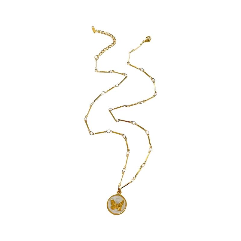 This vibranting enamel butterfly pendant necklace features unique oil drip designs, offering multidimensional color layers and eye catching elegant in sturdy stainless steel for long time wear.