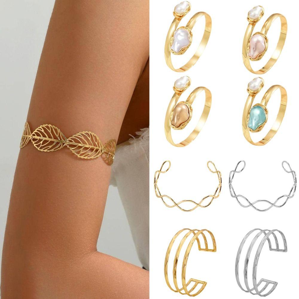 Gold Color Opening Arm Bracelet Metal Arm Bracelet Elegant Armband Party Occasion