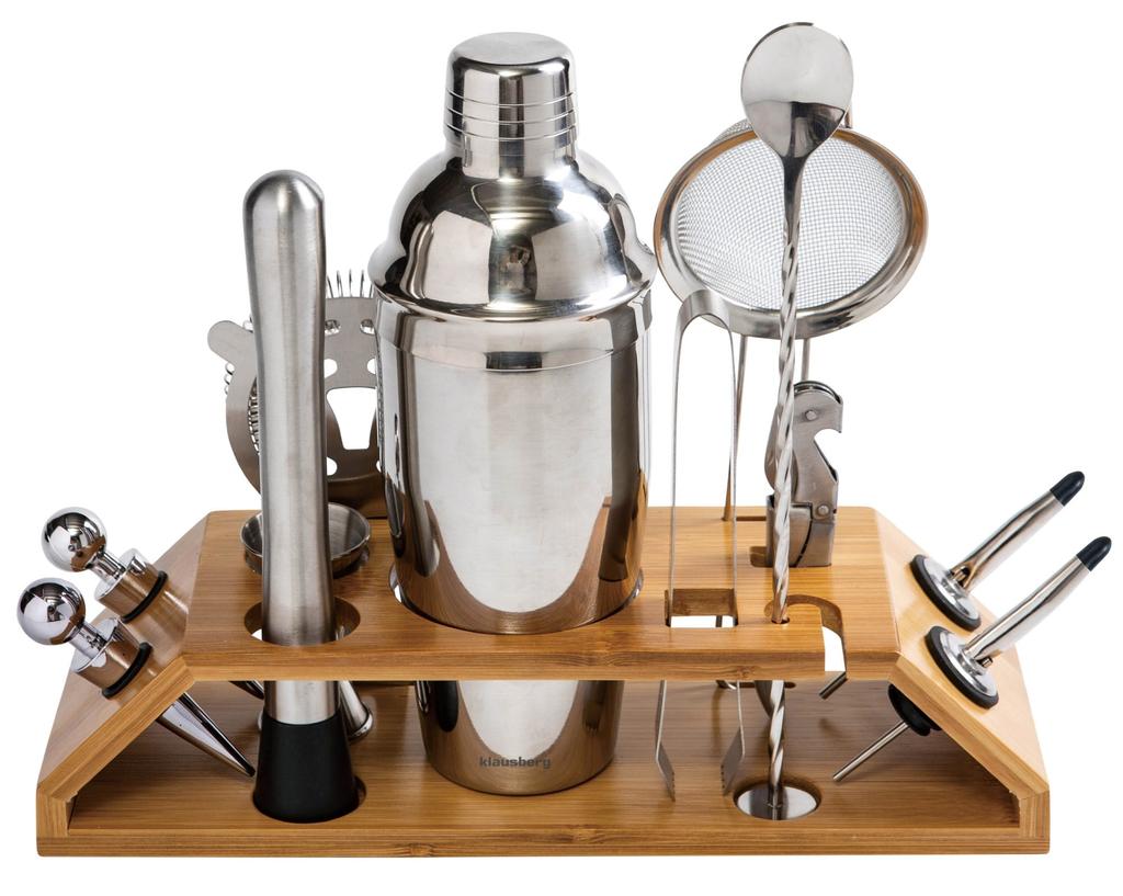 Zestaw barmański do drinków koktajli 13-ele Shaker srebrny KLAUSBERG KB-7654