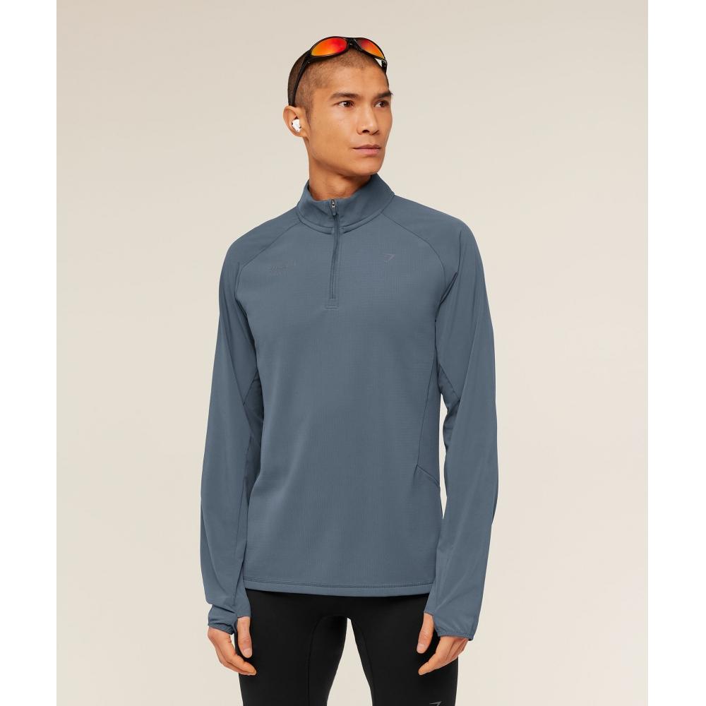 Gymshark Running Elite 1 4 Zip Titanium Blue A2b2s Ucmq