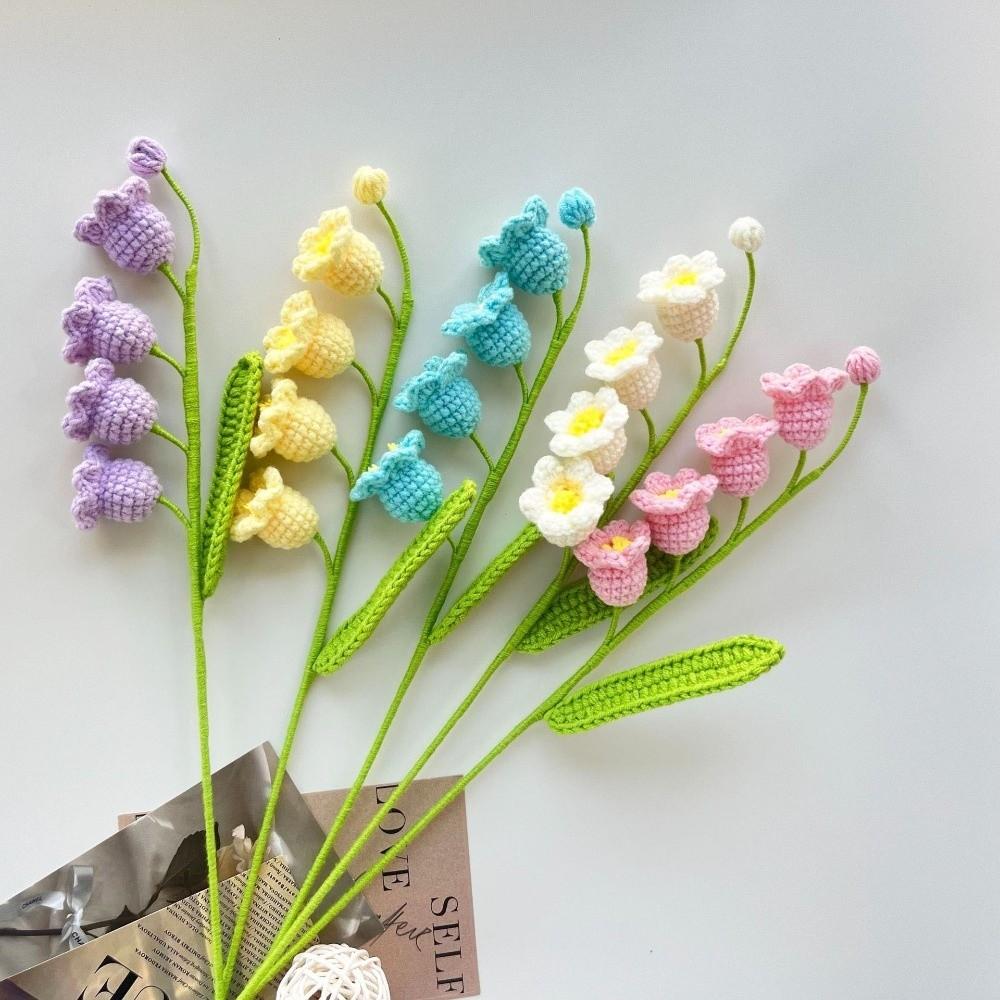 1pc Hand-woven Lily of the Valley Crochet Flowers Artificial Knit Fake Flowers Party Wedding