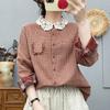 Women's Long Sleeve Plaid Shirt with French Lace Collar, Soft Skin-Friendly Double Layer Cotton