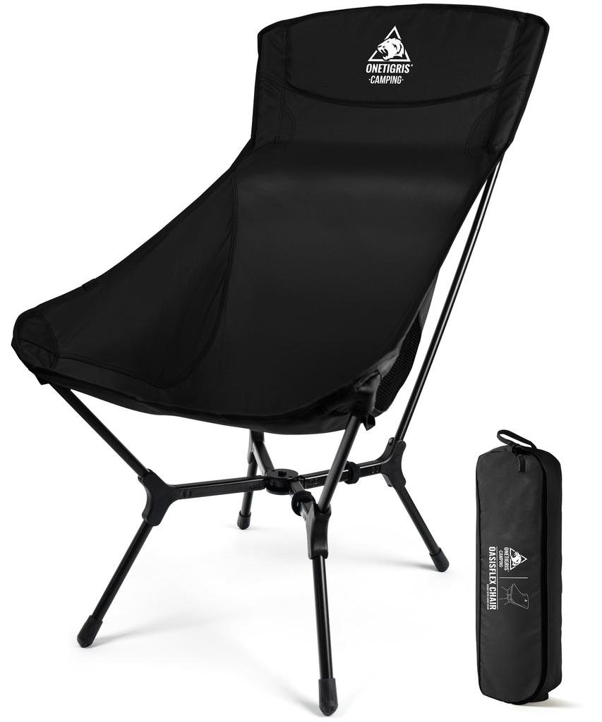 OneTigris OASISFLEX Folding Camping Easy 150kg Weight Aluminum Side Storage Bag Included High-Back Chair, Assembly, Capacity, Frame, Lightweight,