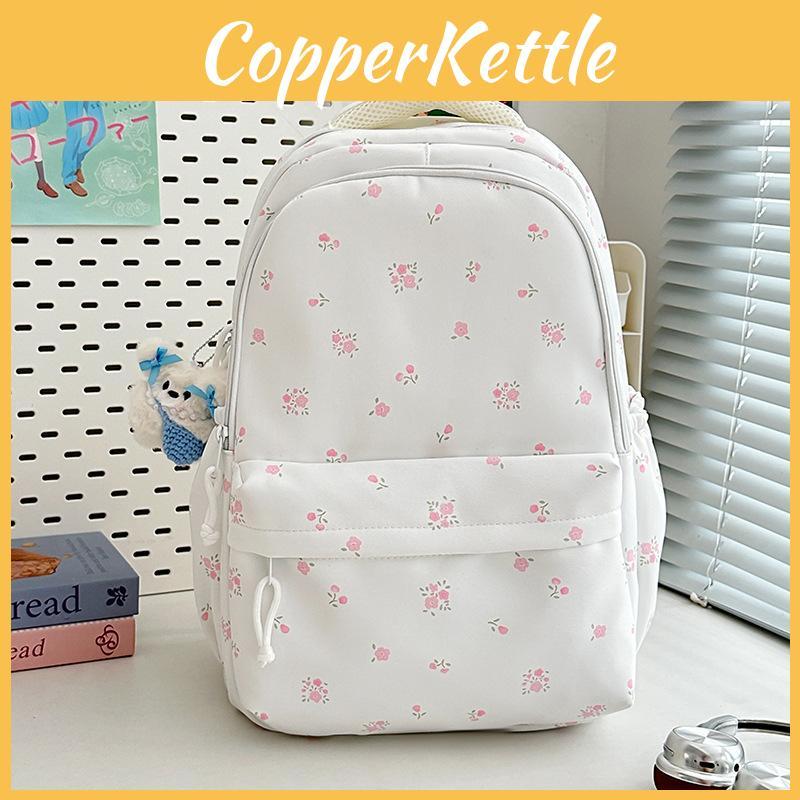 Minimalist Nylon Student Backpack With Geometric Pattern And Floral Details For Daily Use