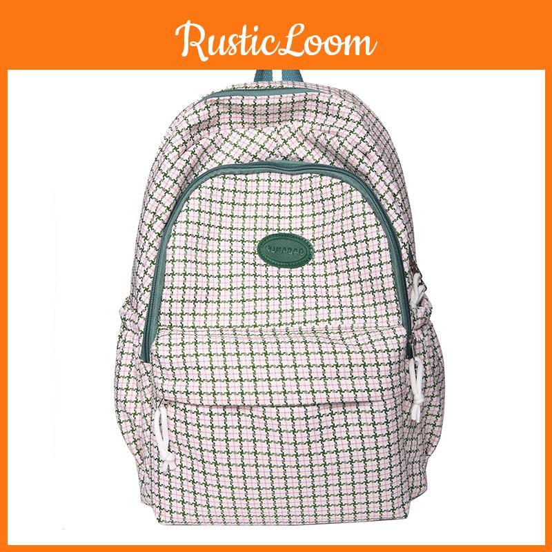 Cute Nylon School Bag With Grid Design And Letter Decoration For Students And Casual Daily Outfits