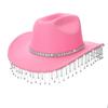 Pink Felt Cowboy Hat With Rhinestone Tassel Decoration For Allseason Sun Protection