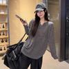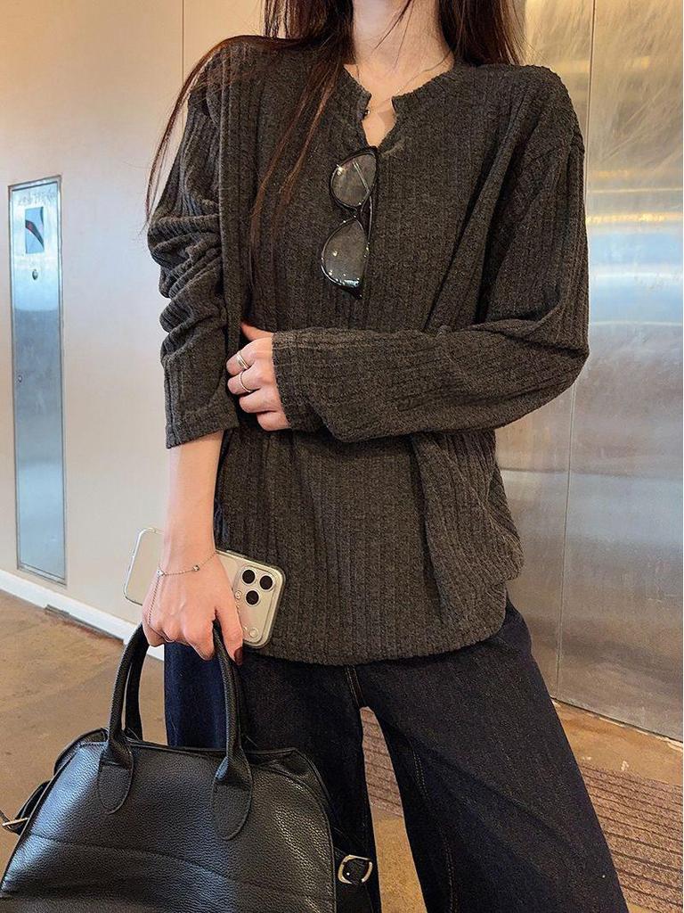 Elevate your wardrobe with this stylish women's base layer shirt, perfect for the transitional seasons of spring and autumn. Crafted from high-quality polyester, this shirt offers a soft and comfortable fit. The solid color design adds a touch of simplicity and elegance, while the textured fabric brings visual interest. Featuring a loose fit, long sleeves, and a chic V-neckline, this shirt embodies the essence of Korean style. Ideal for layering or wearing on its own, it seamlessly adds a versatile flair to any outfit.