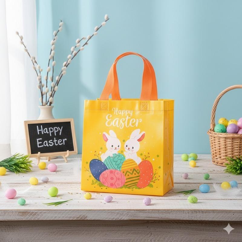 1-10PCS Easter Non Woven Tote BagDurable Dustproof Moistureproof Foldable GiftShopping Bag BunnyEgg Print Retail Merchandise Bag