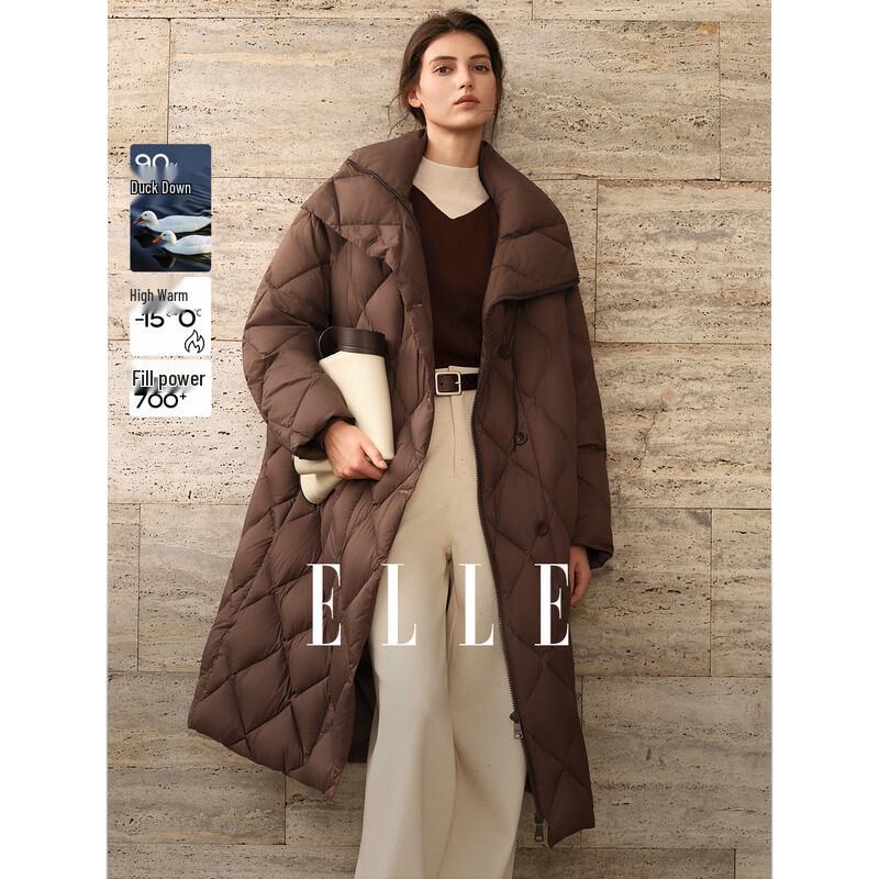 ELLE Women's Vintage Diamond Quilted Long Duck Down Jacket