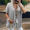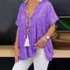 2024 Sommar Paljett V-ringning Avslappnad Lös Passform Kortärmad Damtopp