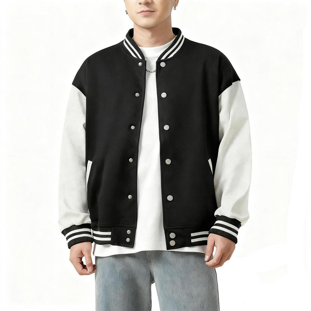 [Lämplig för en mängd olika tillfällen] Den här herrjackan är tillverkad av slitstarkt, nötningsbeständigt tyg, vilket gör den idealisk för vardagsbruk, oavsett om du är ute och rör på dig, tränar lätt eller bara umgås.. Det är ett utmärkt ytterplagg för både hemmet och fritidsbruk, perfekt för vår och höst.. Denna varsityjacka har ett slitstarkt polyestermaterial.