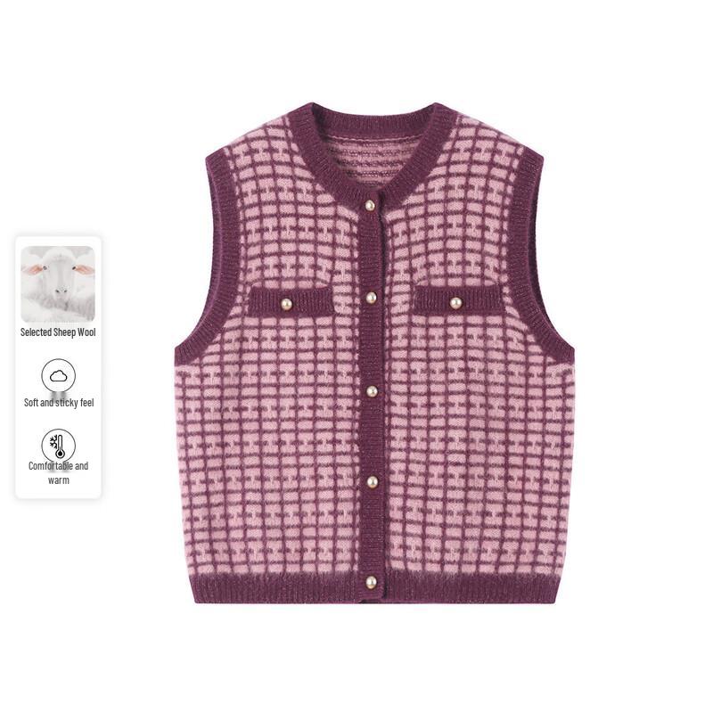 Women's Plaid Wool Blend Sleeveless Cardigan Vest