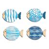 4 Pcs Wooden Fish Wall Decor Rustic Beach Nautical Wood Art Coastal Themed Wall Hanging Sign for Home Lake House Bathroom Decor