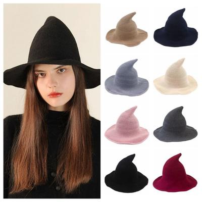Wool Witch Hat Solid Color Halloween Hat Simple Wool Bucket Hat Women