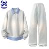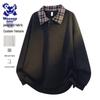 Wassup Sohot Men's American Style Color-block Lapel Fake Two-Piece Polo Sweatshirt