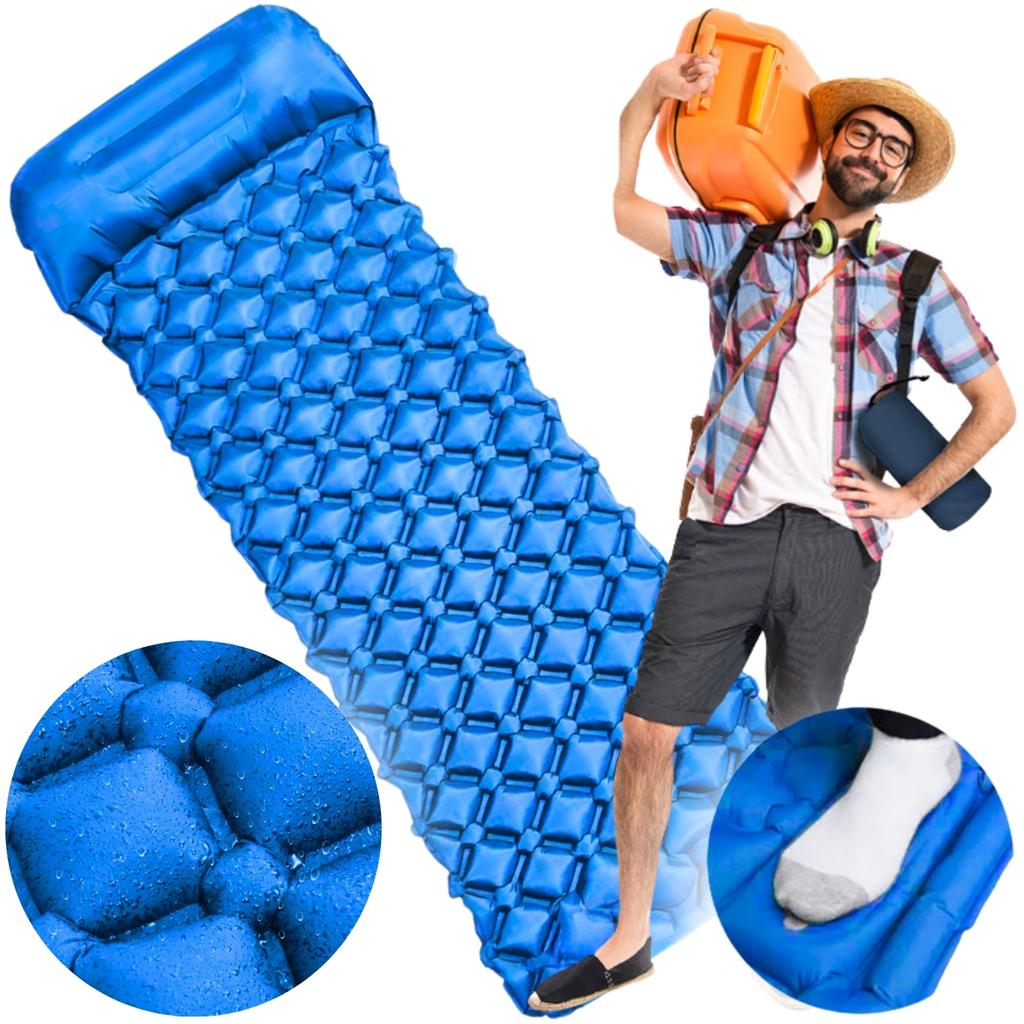 Enpersonsmadrass, liggunderlag, kudde, med pump, för ett robust turisttält