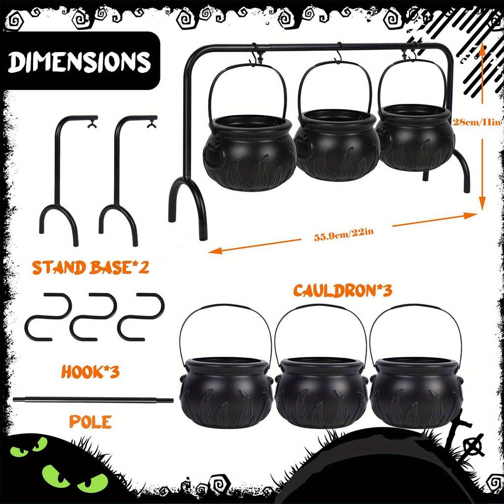 Cubo de dulces de Halloween con asa y soporte, cubo para dulces para truco o trato, caldero, cuenco para dulces para decoración