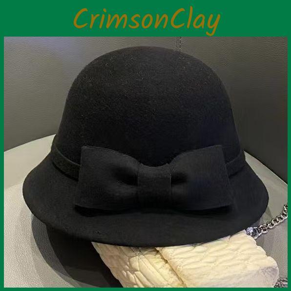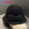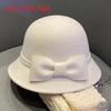 This high-end women's fashion hat features a rounded top design with a short brim, crafted from 31% to 50% wool blend fabric for warmth and wind resistance. The hat measures suitable for head circumferences of 56-59 cm, combining nylon and wool for durability and comfort. Perfect for autumn and winter, it adds a touch of French elegance to casual or formal outfits. Easily maintained by wiping clean with a damp cloth, this style showcases a sleek solid color with a fashionable bow knot detail, enhancing a fresh and sweet look during seasonal outings.