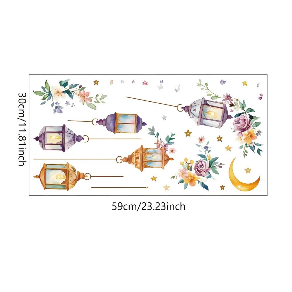 Eid Wall Decals Watercolor Botanical Floral Moon Wall Art Ramadan Muslim and Islamic Window Stickers Eid Decorations