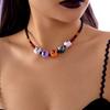 This handcrafted women's jewelry features geometric designs with bat and ghost charms, crafted from durable wood beads. Measuring approximately in diameter, it offers a lightweight feel for comfortable wear. Ideal for holiday celebrations or themed events, it complements casual or festive outfits. Wipe clean with a soft cloth for maintenance.