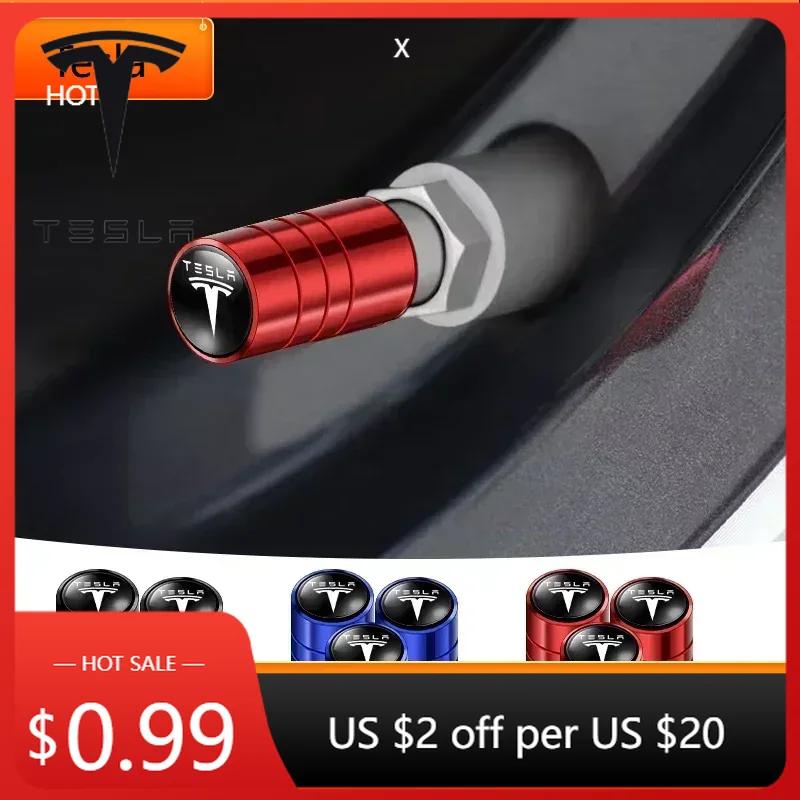 Bilklistermärke Tesla 4 st Däck Hjul Ventil Luftventiler Kapsyl Aluminium Räfflad Stil Dekoration För Tesla Modell 3 Modell S Modell Y Vägar