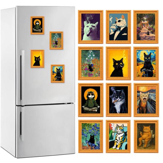 Kreativ Minikonst med Ram: Varje magnet har en unik kattgrafik inramad som ett miniatyrkonstverk. Denna design förvandlar vanliga kylskåp, metallskåp eller förvaringsenheter till fängslande minigallerier som omedelbart drar uppmärksamhet och lyfter dina utrymmens estetik.