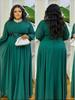 Unveil an aura of elegance and sophistication with this stunning dress, perfect for formal banquets and special occasions. Crafted from smooth chiffon and adorned with shimmering sequins, this piece features a solid emerald green hue that captures attention effortlessly. The dress showcases a cinched waist, enhancing the silhouette while offering a flattering fit. Its long pleated skirt with a wide hem flows gracefully, providing a touch of drama with every step. The round neckline and long sleeves add a refined finish, making this dress an exquisite choice for any formal event.