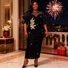 This elegant banquet gown is designed for plus-size women, offering a stunning combination of style and comfort. The dress features a solid black sequin design that shimmers beautifully, making it perfect for formal occasions. Its standout puff sleeves add a touch of sophistication, while the exquisite 3D floral embroidery enhances its overall charm. Crafted from high-quality polyester, this gown ensures a comfortable fit and ease of movement. The round neckline completes the look, providing a classic silhouette that highlights elegance and grace. Perfect for making a statement at any event.