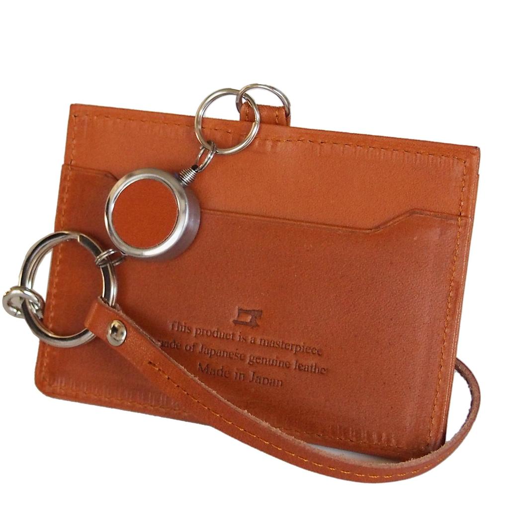 [Material] Cowhide (Made in Japan) [Size] Pass case: 100mm wide x 70mm high x 4mm thick; Strap: 240mm long; Reel key: Extends up to 60cm. [Specifications] 1 card pocket; 1 card pocket with window.