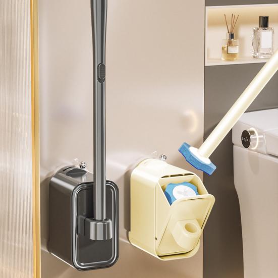The dual-color storage system includes black and white buckets for organized tool separationblack for long-handled toilet brushes and white for sponge brush heads or other cleaning suppliesenhancing practicality. Its innovative wall-mounted, hole-free installation saves floor space by firmly adhering to smooth surfaces like tiles, keeping your bathroom neat and orderly.