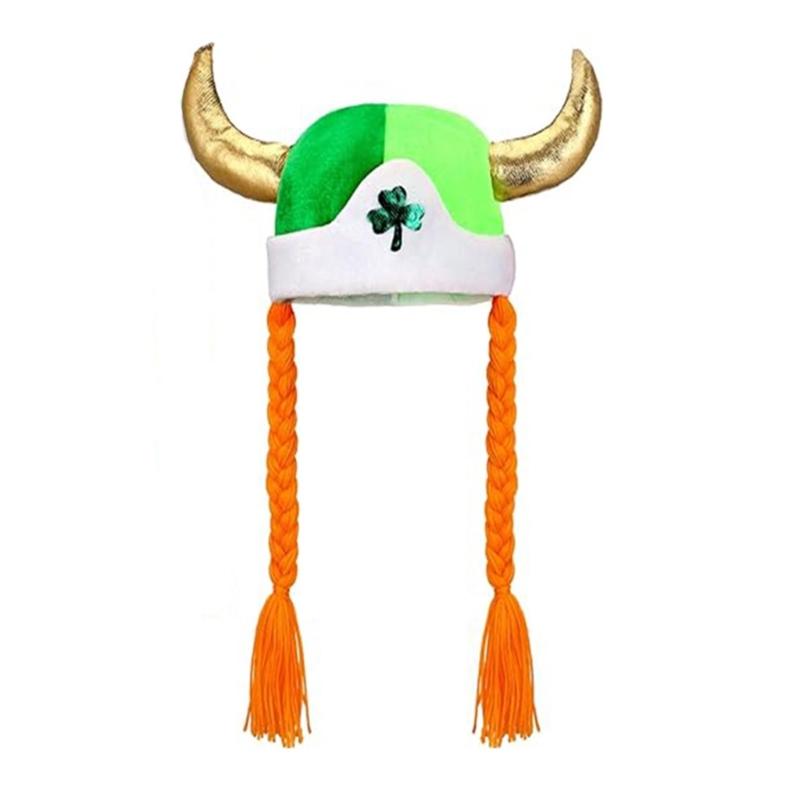 Patrick's Day Skull Caps Baenie Green Shamrocks Baenie Hat with Braid Funny Novelty Baenie Hat for Irish Party Decors