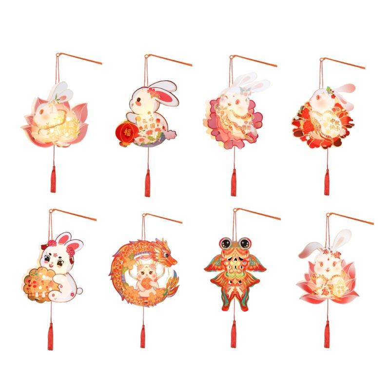 Crafted with paper, this portable lamp set features intricate designs and lights sources that projects beautiful, colorful pattern, enhancing any festival decoration.