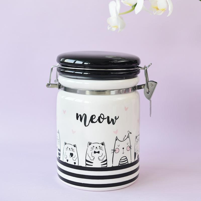 Creative ceramic sealed jar, large buckle with lid storage tank, round tea can, food and grains storage tank