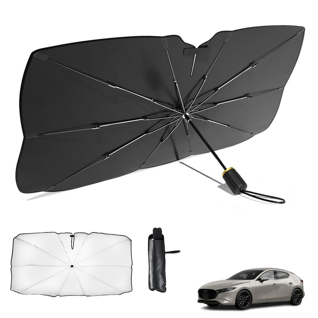 • [Sturdy 10 ribs & mirror exposed design] Applicable to Mazda MAZDA3 Fastback 4th generation BP series BP5P/BPFP/BPFJ3P/BP8P/BPEP type 2019-Current; Adopts 10 ribs made of fiber composite material, which effectively guarantees the stability of the product, and at the same time is flexible, quite sturdy and hard to break.The umbrella rib fits perfectly on the car windshield and can block UV rays from every corner.The middle rod is made of ABS and is highly durable.There is a cut in the center of the top, so it won't interfere with the rearview mirror or drive recorder, so you can check the situation behind you with peace of mind.