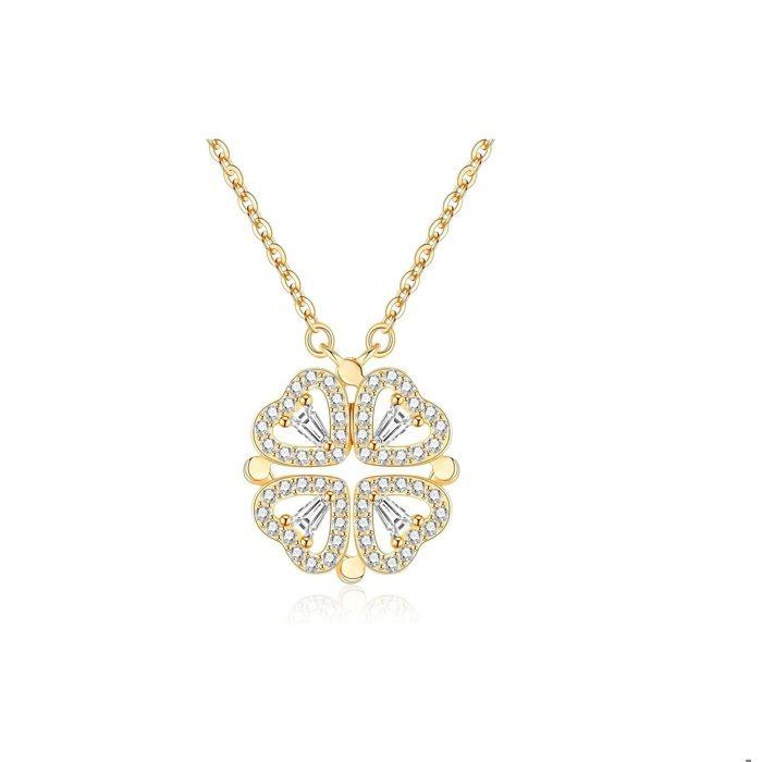 Collier trèfle à quatre feuille en forme de coeur en doré blanc