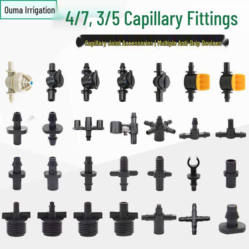 Capillary Fittings: Single/Double Hook, Tee, Straight Connector, Drip Stop, Mountain Bracket, Five-Way, Greenhouse Micro-Sprinkler
