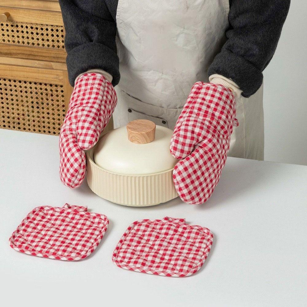2 pcs Heat-Resistant Microwave Mitten Cotton Lining Insulated Glove Household