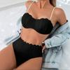 Women's White Pearl Strap Scalloped Edge High Waist Bikini Set Two-Piece Swimsuit
