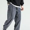 Herr Mörkblå Manchestercord Casual Byxor med Sidoficka och Dragsko i Midjan