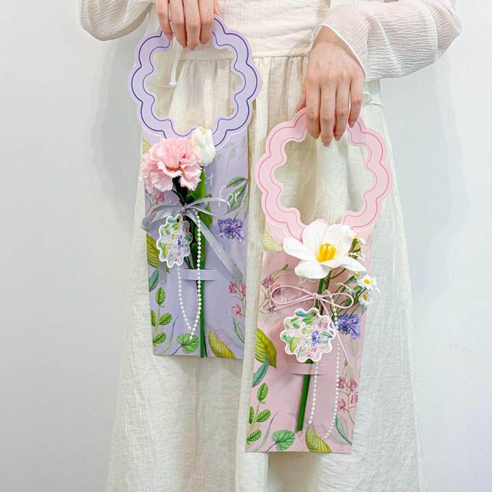 5pcs Carnation Bouquet Packaging Box Handheld Flower Insert Bag New Flower Tote Bag Teachers' Day