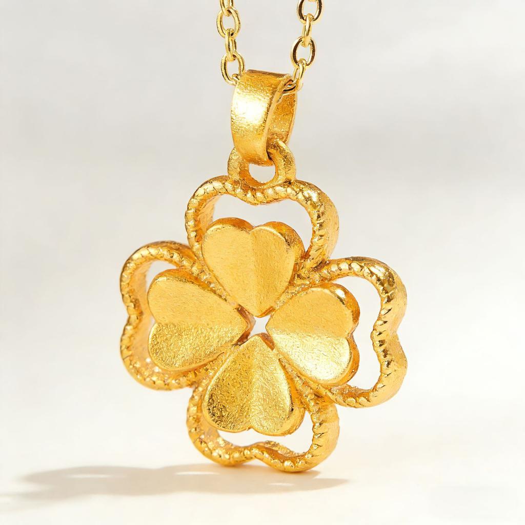 Spot TEMU explosion lucky light luxury four-leaf clover golden flower jewelry