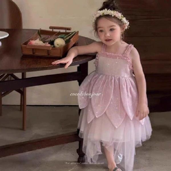 Blomstertjej Klänning Väst Ärmlös Axelrem Hängsel Prinsessa Bladkjol Magiska Alver Halloweenklänning