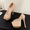 Pesstwei Women High Stiletto Heels Fashion Lace Mesh Peep Toe Platform Pumps WEDDING Party Stripper Shoes