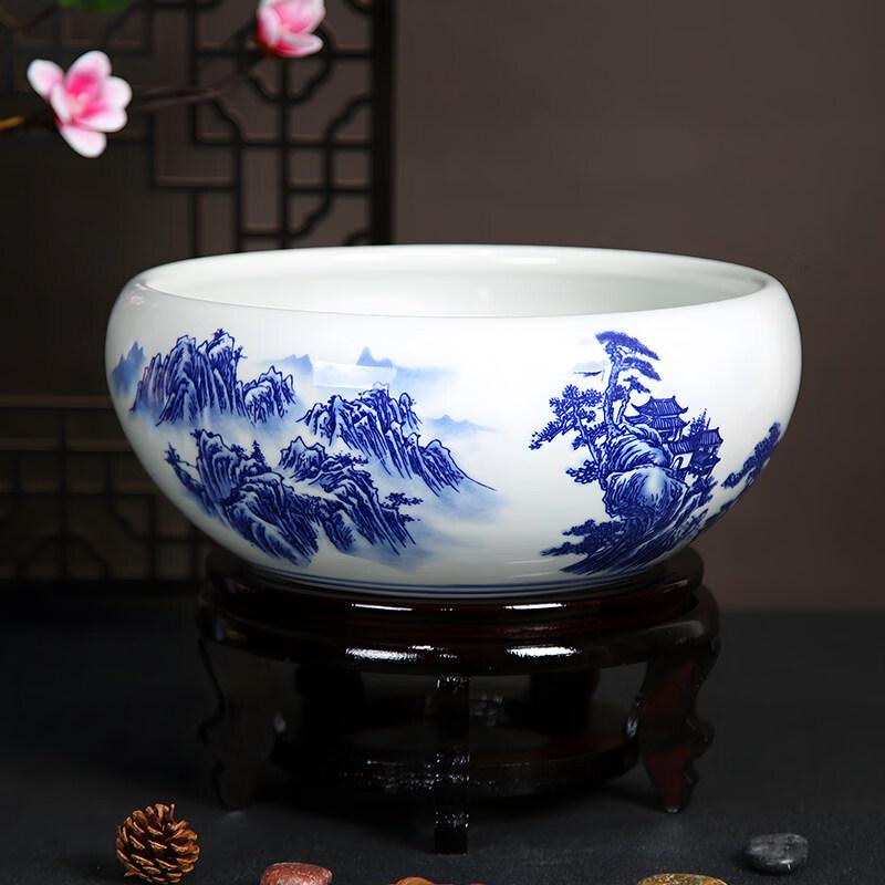 Blue & White Landscape Bonsai & Lotus Ceramic Pot